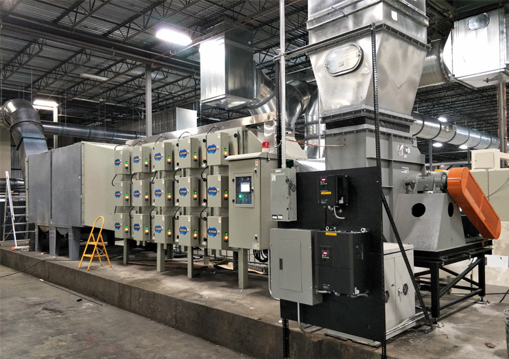 當(dāng)然,工業(yè)上的凈化設(shè)備與餐飲業(yè)油煙凈化器相比,也有其特殊性,一個是工業(yè)除塵和廢氣凈化設(shè)備一個是要求處理量大,二個是要高效而又經(jīng)濟(jì)。由于大規(guī)模的工業(yè)生產(chǎn)企業(yè)產(chǎn)生的廢氣和粉塵較大,風(fēng)量大,所以這類設(shè)備普遍都比較大。其次是工業(yè)廢氣種類復(fù)雜,有些化學(xué)氣體是分子級的,無法通過靜電吸附,只能通過溶解,分解和吸附等方式處理。